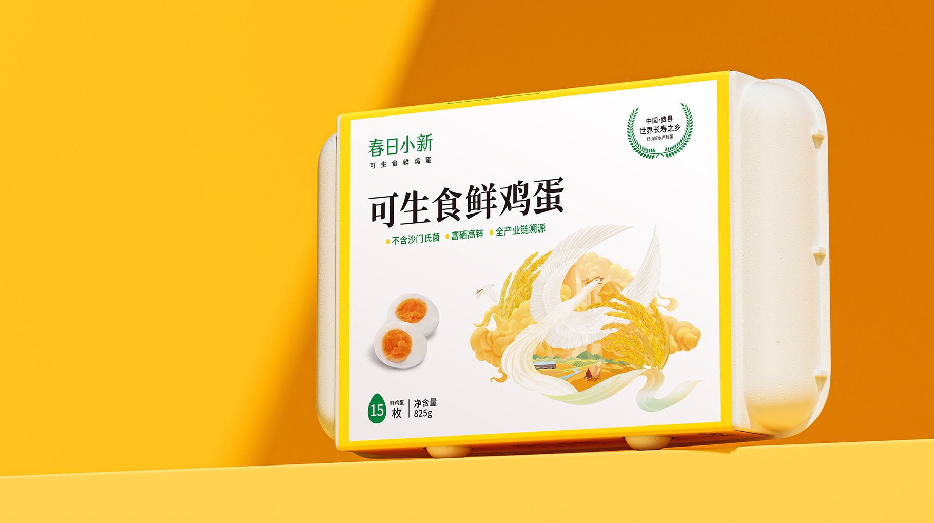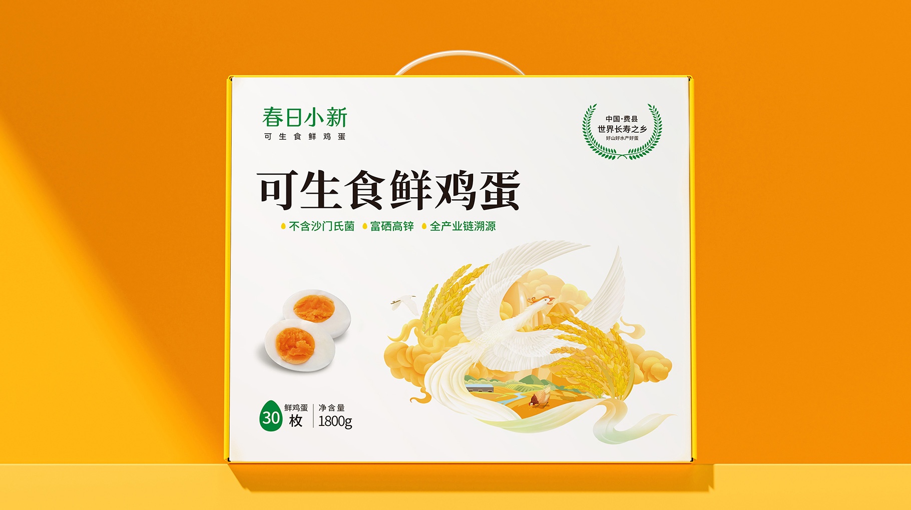 同道對春日小新可生食鮮雞蛋產(chǎn)品包裝進(jìn)行重新的視覺設(shè)計,以區(qū)別市面上花花綠綠的國潮插畫,以更加具有質(zhì)感及獨特的視覺符號讓產(chǎn)品更具檔次感,便于在琳瑯滿目在終端貨架陳列中更加具有產(chǎn)品的識別力及認(rèn)知力。