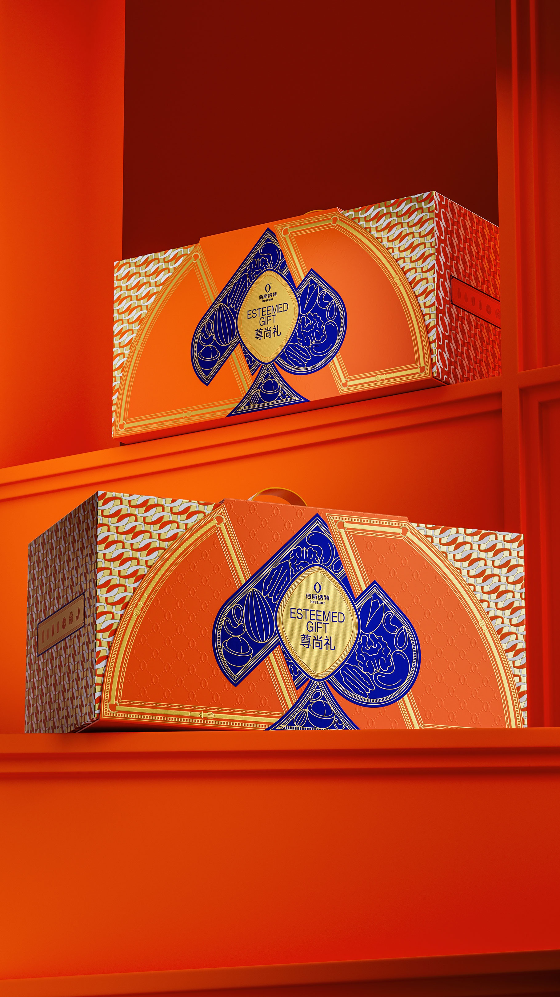 “尊尚禮”這一名稱,借 “尚” 所蘊(yùn)含的崇尚、尊重之意,一方面表達(dá)對(duì)堅(jiān)果品質(zhì)的極致追求,另一方面體現(xiàn)對(duì)消費(fèi)者品味與身份的敬重。整個(gè)設(shè)計(jì)圍繞追求高品質(zhì)生活的消費(fèi)群體展開,旨在打造出獨(dú)具特色與格調(diào)的堅(jiān)果禮盒,使其在市場(chǎng)中展現(xiàn)出與眾不同的魅力。