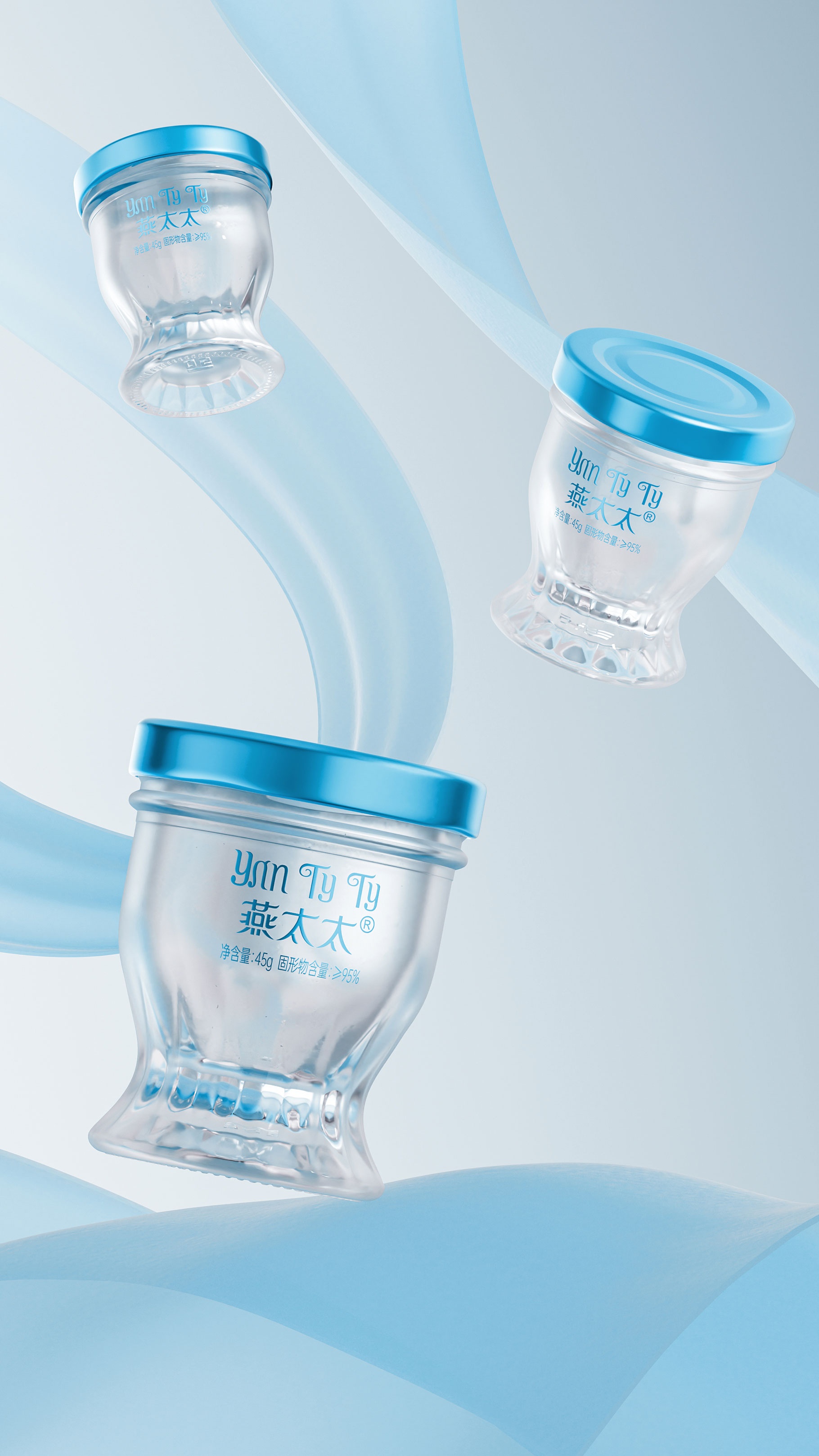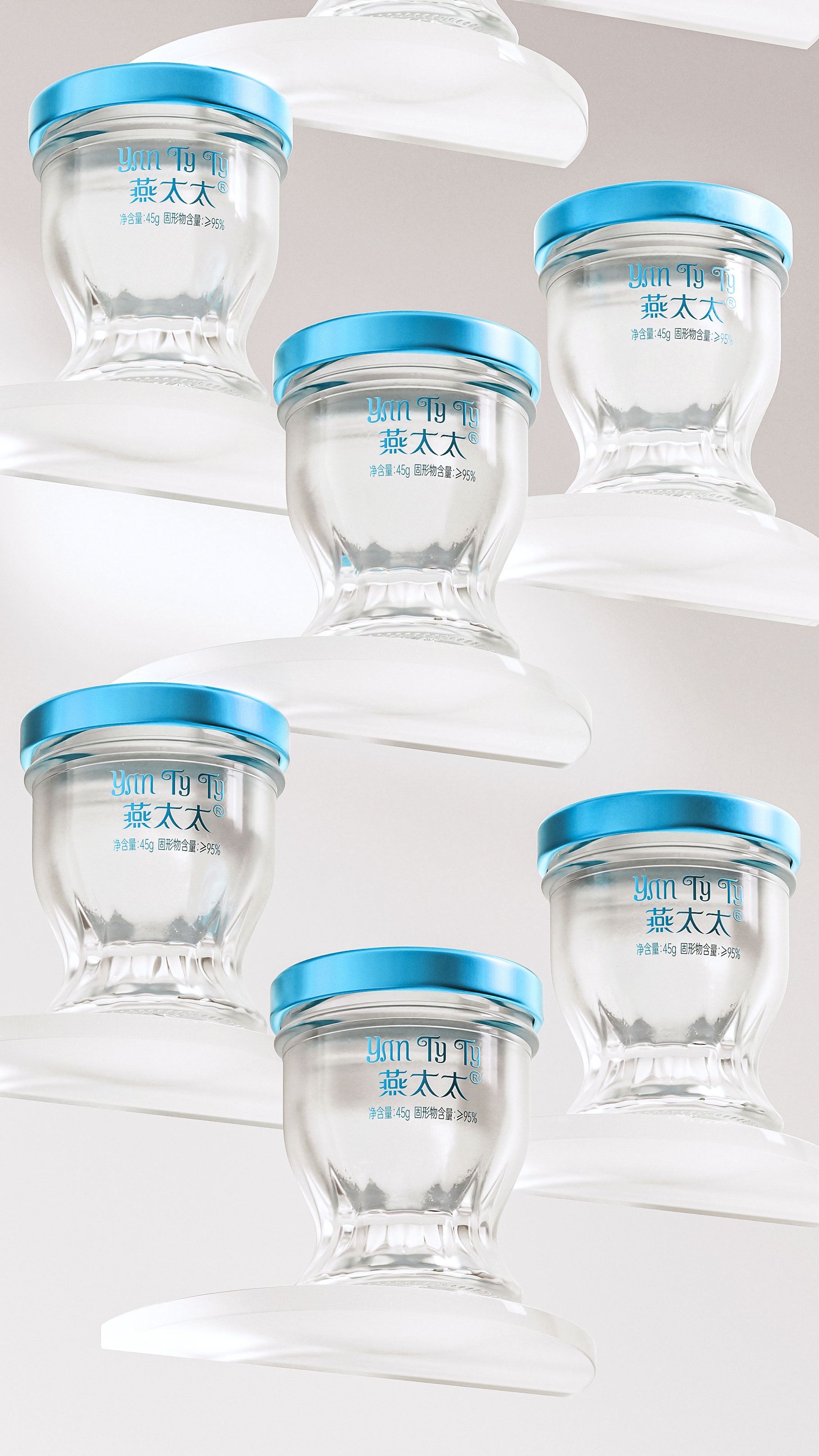 功能細節上,瓶身采用食品級水晶玻璃與氮氣鎖鮮工藝,確保燕窩品質;瓶底拋光切面,在光影下折射出琥珀色光澤,暗合傳統滋補文化的貴重屬性。
