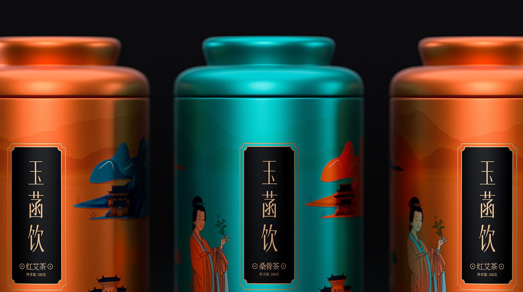 玉函飲是廣東暨晴生物醫藥科技公司旗下推出高端養生茶葉產業品牌,以東莞羅浮山原種紅腳艾含有豐富的鋅等天然元素作為主原料結合桑骨茶和搭配出符合東方女性養生的美容茶,口感酸甜,非常適合女性消費者,整體品牌包裝以東莞羅浮山作為創作背景,結合東莞羅浮山的道教圣地文化,同時將東晉第一位女神醫“鮑菇”之經典形象作為主符號,結合羅浮山的自然風情,以現代文雅的表現手法進行創作,整體包裝具有東方文化之精髓,同時傳遞當下人們對純樸自然風情的生活方式向往。