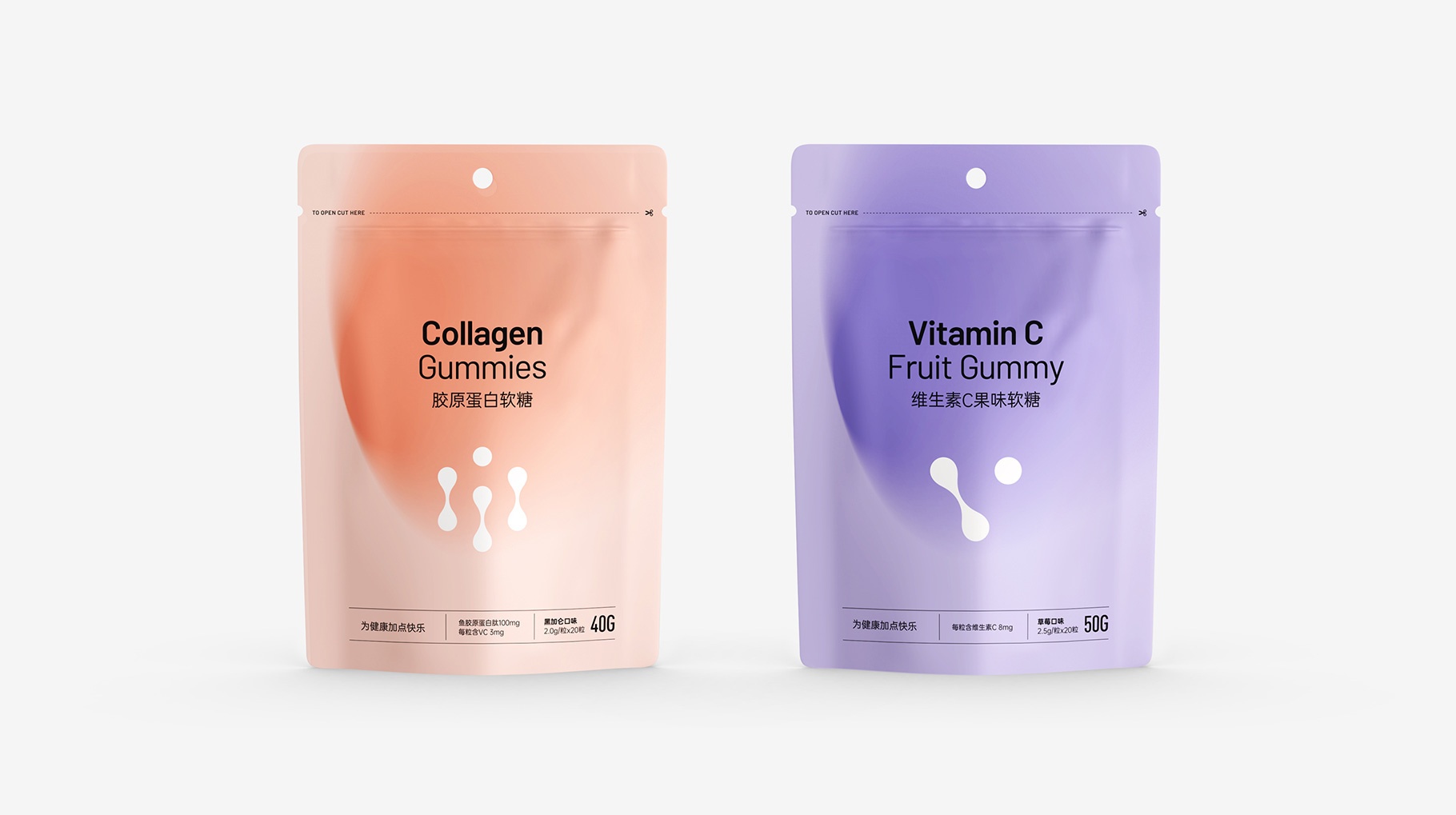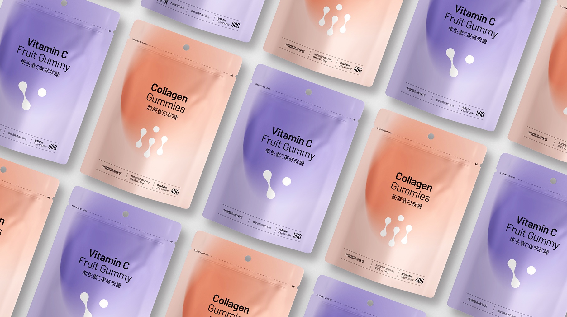 膠原蛋白肽直飲粉、膠原蛋白軟糖、維生素C果味軟糖,產(chǎn)品包裝設(shè)計
