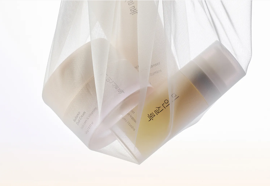 此外,MIIN SILOK的次級包裝則使用了閃光面料,這種材質靈感來源于提取米酒酒糟時使用的棉布。閃光面料不僅突出了品牌的核心成分,還賦予包裝一種奢華感。傳統的韓國結繩元素被巧妙地加入到包裝設計中,增加了品牌的獨特性和文化底蘊,進一步提升了消費者的品牌體驗。