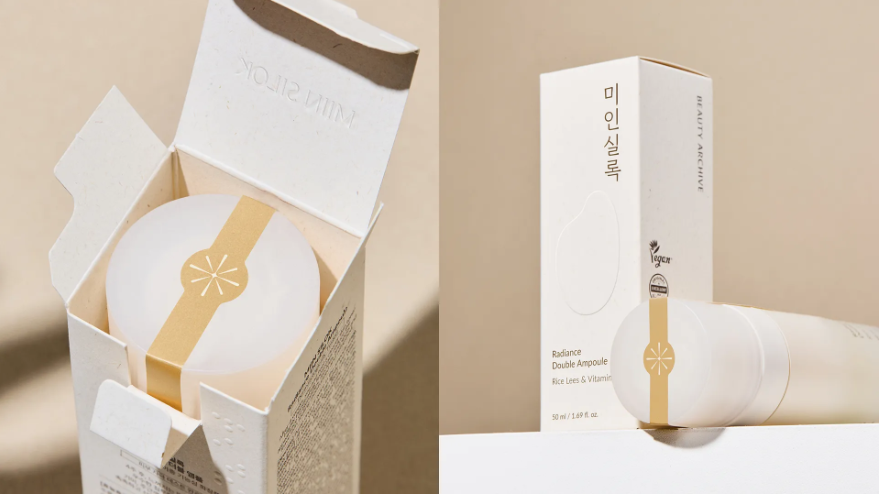 在包裝材質的選擇上,MIIN SILOK充分汲取了韓國傳統文化的靈感。品牌的包裝設計受到“韓紙”(Hanji)的啟發,韓紙是韓國傳統歷史記錄中使用的紙張,具有獨特的紋理和質感。MIIN SILOK的包裝材料模仿了韓紙的質感,賦予產品一種手工藝感和歷史感,同時又兼顧現代護膚品對高端、精致質感的需求。